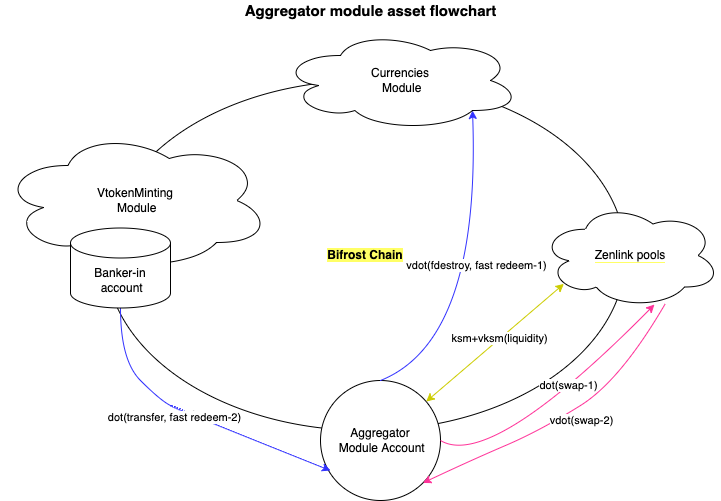 The remaining DOT in the current module + the Redeem value requested by the current module < the set arbitrage loop maximum value (the arbitrage loop maximum value can be set and modified by governance). Then perform the Redeem operation on the newly acquired vDOT in the module (DOT Ready Pool will immediately process the Redeem order submitted by the Aggregator first)